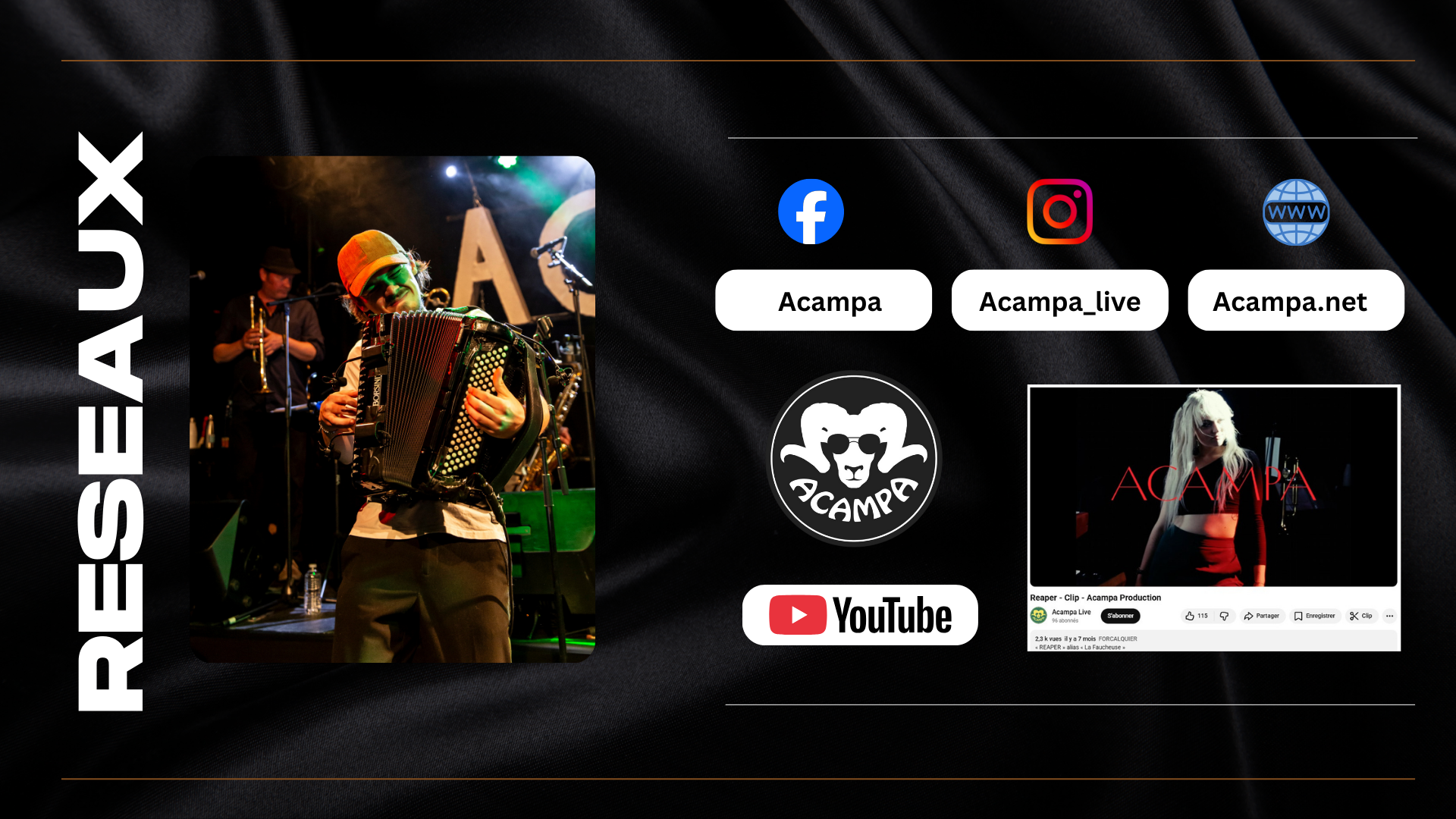 Merci à toute l’équipe ? #acampa #musique #groupe #teaser #2025 #concerts #festival #compos #clip #foryou #youtube #musiciens #like](https://scontent-iad3-1.cdninstagram.com/v/t51.82787-15/517113024_17954720594978084_7520858045047727833_n.jpg?stp=dst-jpg_e35_tt6&_nc_cat=108&ccb=7-5&_nc_sid=18de74&efg=eyJlZmdfdGFnIjoiQ0xJUFMuYmVzdF9pbWFnZV91cmxnZW4uQzMifQ%3D%3D&_nc_ohc=N0hKmn4KEXIQ7kNvwHRyMI-&_nc_oc=Adm3PSGWa6O-keGcJCsJvLBvtDNzPJ1Fd9HyDijzs90ZKzH0che5sIPa4hp9dOONC8E&_nc_zt=23&_nc_ht=scontent-iad3-1.cdninstagram.com&edm=ANo9K5cEAAAA&_nc_gid=p1xw8_ZM2RFaX2Sc3Quqxg&_nc_tpa=Q5bMBQGuFYdyMtwvjDKXdwslkaWNjjzB1FbSXHUKX_XwiA-8IiPQipI6V1r5AWtGqK__-boQejNSnECy7A&oh=00_Afz2ShLutQpfNespEPrFgdadhtwTmM5a7UapRwEXXHuP4Q&oe=69B7CACA)